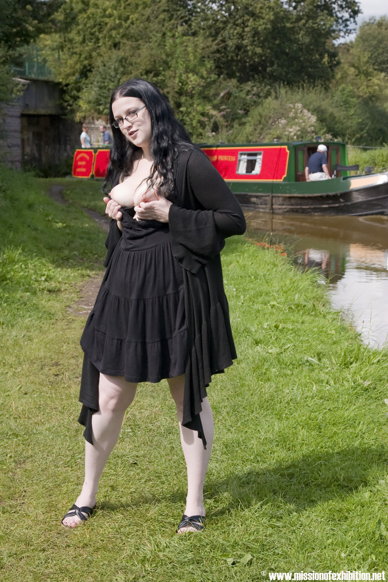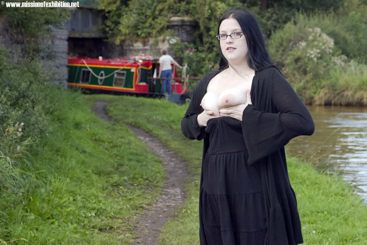 Celeste gives us a flash of her boobies by the lock