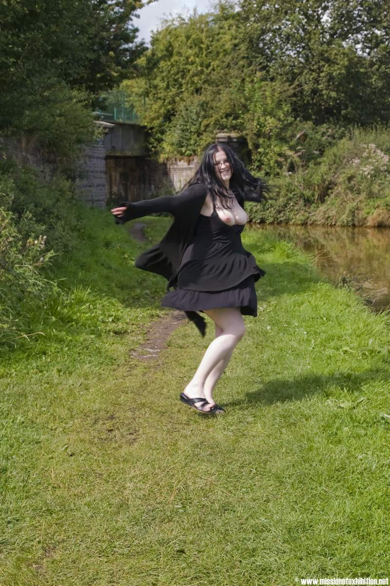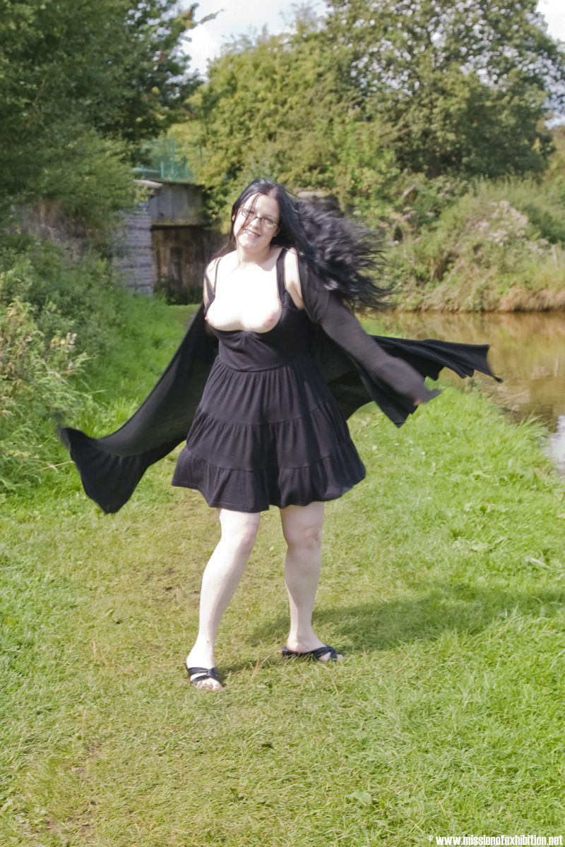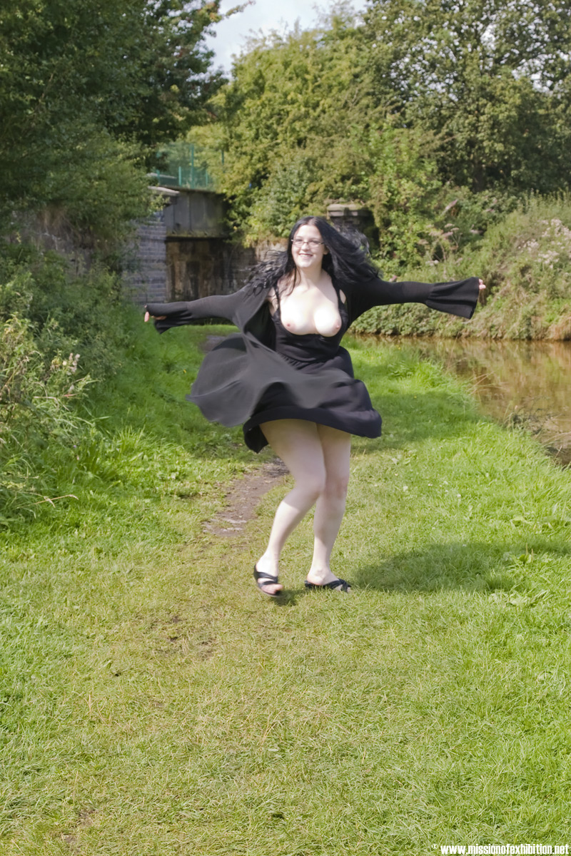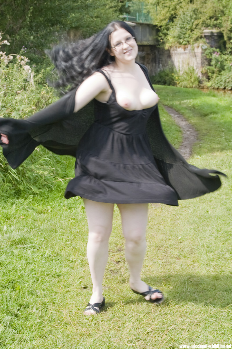dress and revealing no panties, our girl just pisses